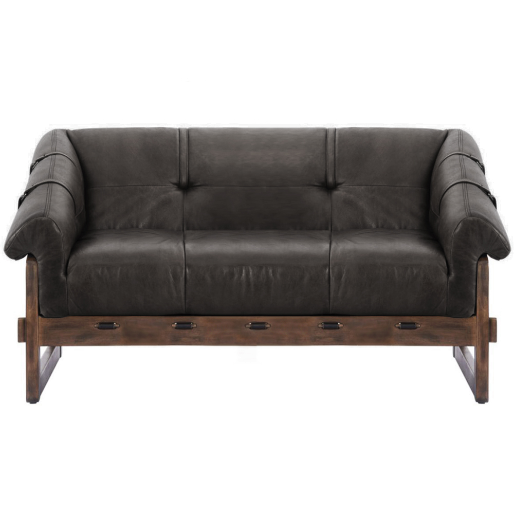 Двухместный диван Duncan винтажная черная кожа Черный Коричневый в Екатеринбурге | Loft Concept