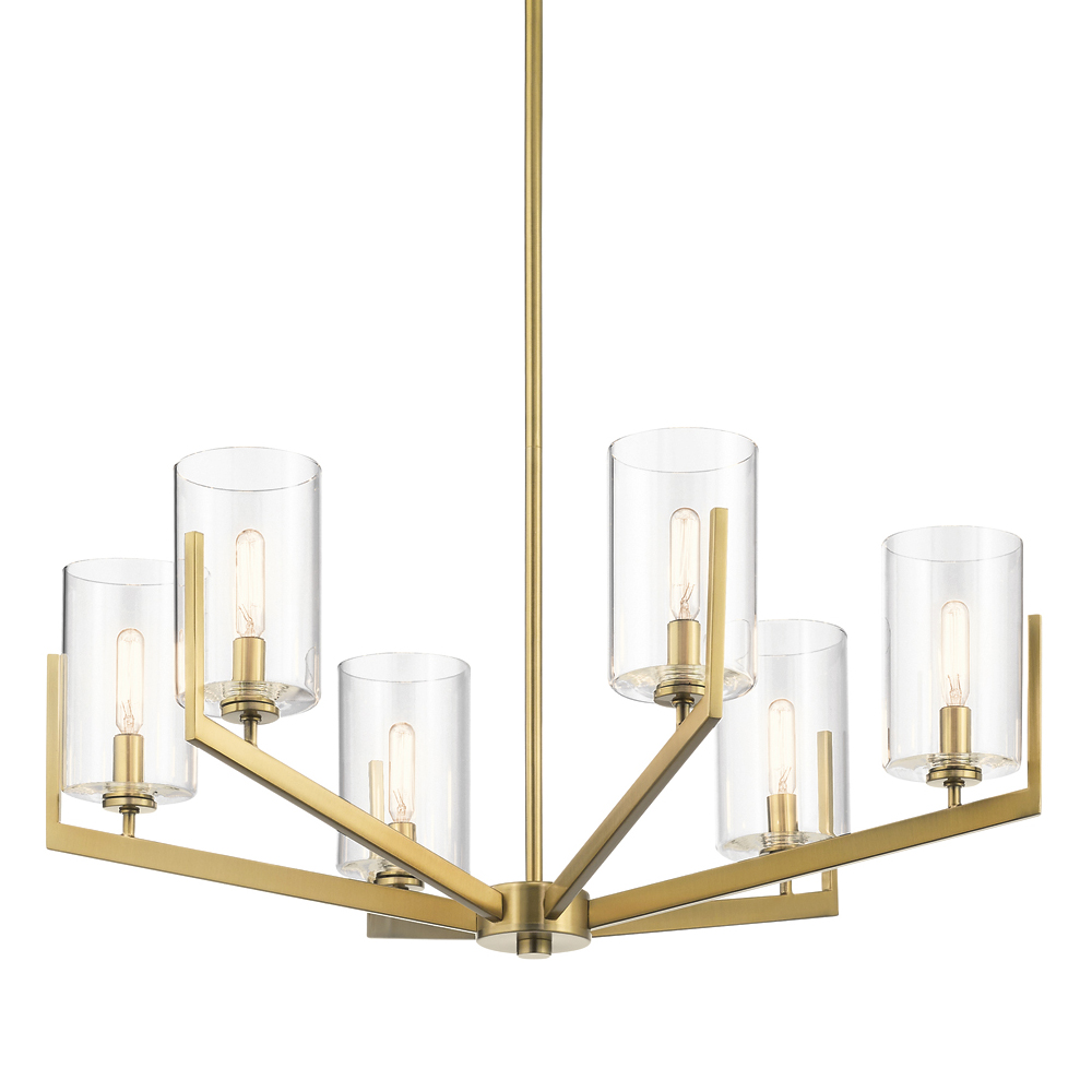 Люстра с 6-ю прозрачными цилиндрическими плафонами Kichler Латунь Прозрачное Стекло Никель в Екатеринбурге | Loft Concept