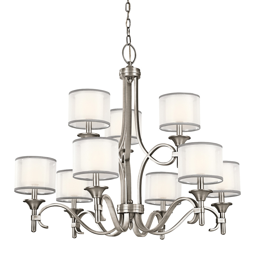 Люстра Elstead Lighting KL-LACEY9-MB. Придется по душе каждому. Противоречивое очарование старинного стиля и современных материалов. Мощное, без лишних украшений, основание и изящные изгибы. Авангардные двойные абажуры, внешняя часть которых из органзы, а внутренняя - из матового стекла. Основание выполнено в цвете - Бронза, олово. Подходит для освещения гостинной, кухни, спальни, столовой. Цепь 1829 мм в комплекте