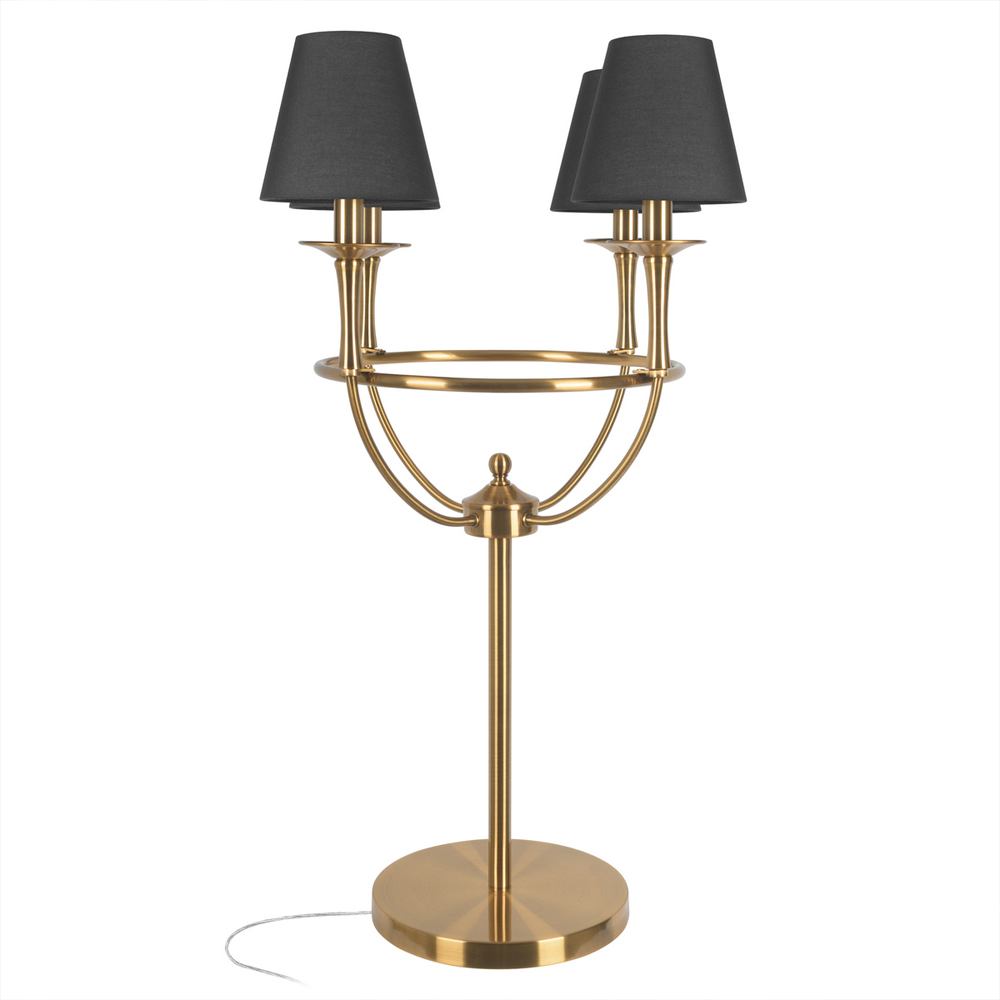 Настольная лампа на металлическом основании бронзового цвета с 4-мя черными конусовидными абажурами Dignity