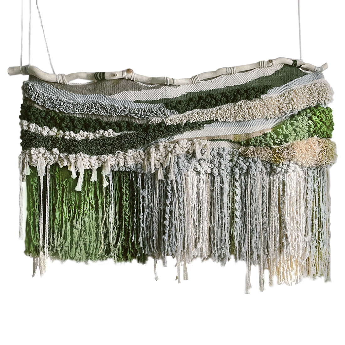 Дизайнерское текстильное Панно с зелеными вставками Бежевый Коричневый Зеленый в Екатеринбурге | Loft Concept