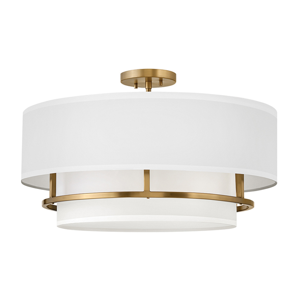 Потолочный светильник с двухслойным белым текстильным абажуром Hinkley