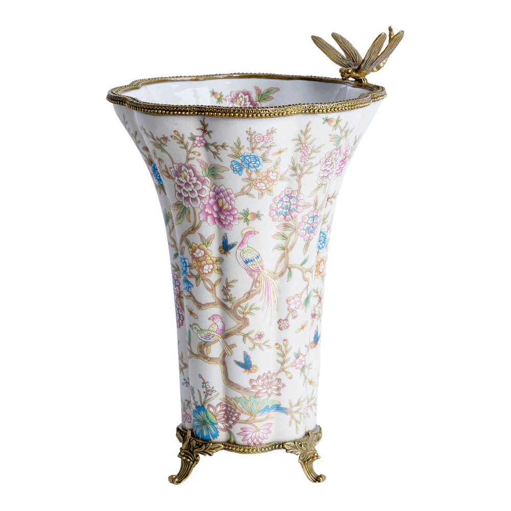Ваза из фарфора с бронзвой стрекозой Paradise Dragonfly