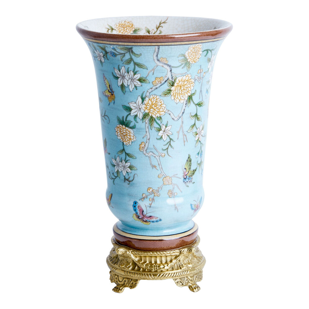 Ваза из голубого фарфора с бронзовыми элементами Blue Garden